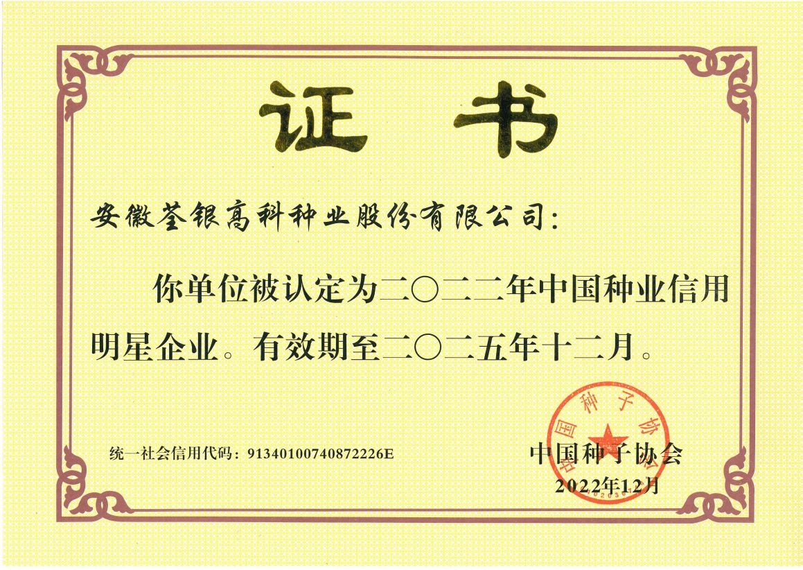 安徽荃銀高科種業股份有限公司是一家“以種業為核心、農業服務為延伸、探索和創新農業多元化發展”的現代高科技種業上市公司,證券代碼:300087。公司注冊資金9.47億元,系“中國種業領軍企業、農業產業化國家重點龍頭企業、國家高新技術企業、農業部首批農作物種子育繁推一體化企業、中國種業信用明星企業"。在國內控股子公司20多家,在國外設立分支機構4家,良種銷售至全國20多個省(市、區),出口覆蓋20多個國家與地區,種業綜合實力、雜交水稻研發、推廣及海外業務規模均居全國種子企業前2位。